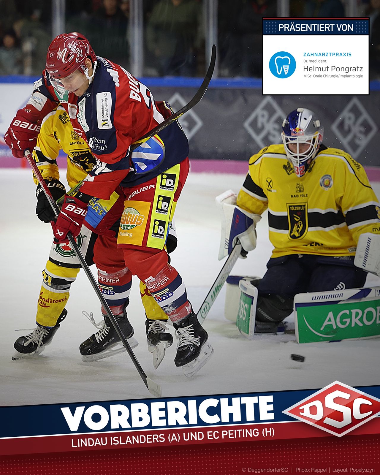 Für den DSC gilt es am kommenden Wochenende, genau dort anzusetzen, wo man zuletzt aufgehört hat: mit einer kompakten Defensive und dem derzeit besten Penalty-Killing der Liga den Gegner zur Weißglut bringen. Gelingt es Silvan Heiß, Ondrej Pozivil & Co., diese Tugenden auch gegen die Islanders und Peiting auf das Eis zu bringen, sind die nächsten Punkte eine logische Folge. Ein Beweis für die erarbeitete Stabilität im Deggendorfer Spiel waren zuletzt die beiden zu-null-Erfolge am vergangenen Wochenende und genau 121 Minuten und 15 Sekunden ohne Gegentor. Neuzugang Luca Zitterbart wird aller Voraussicht nach an diesem Wochenende sein Debüt im DSC-Trikot geben.