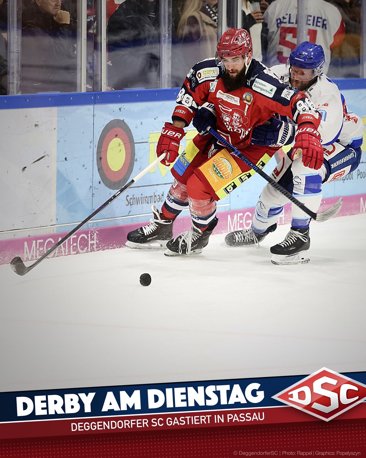 DSC-Übungsleiter Fratkin blickt mit Vorfreude auf das Derby: „Passau hatte einen guten Saisonstart und hat dieses Jahr einen sehr guten Kader, das wird ein schweres Spiel für uns. Das Derby ist eine spezielle Partie, auch weil es mein erstes Pflichtspiel gegen Passau ist. Aber wir freuen uns alle darauf!“ Für den Deggendorfer SC geht es also nicht nur um wichtige Punkte, sondern auch um die Prestige. Um in der Eisarena Passau bestehen zu können, braucht das Team die lautstarke Unterstützung seiner Anhänger.