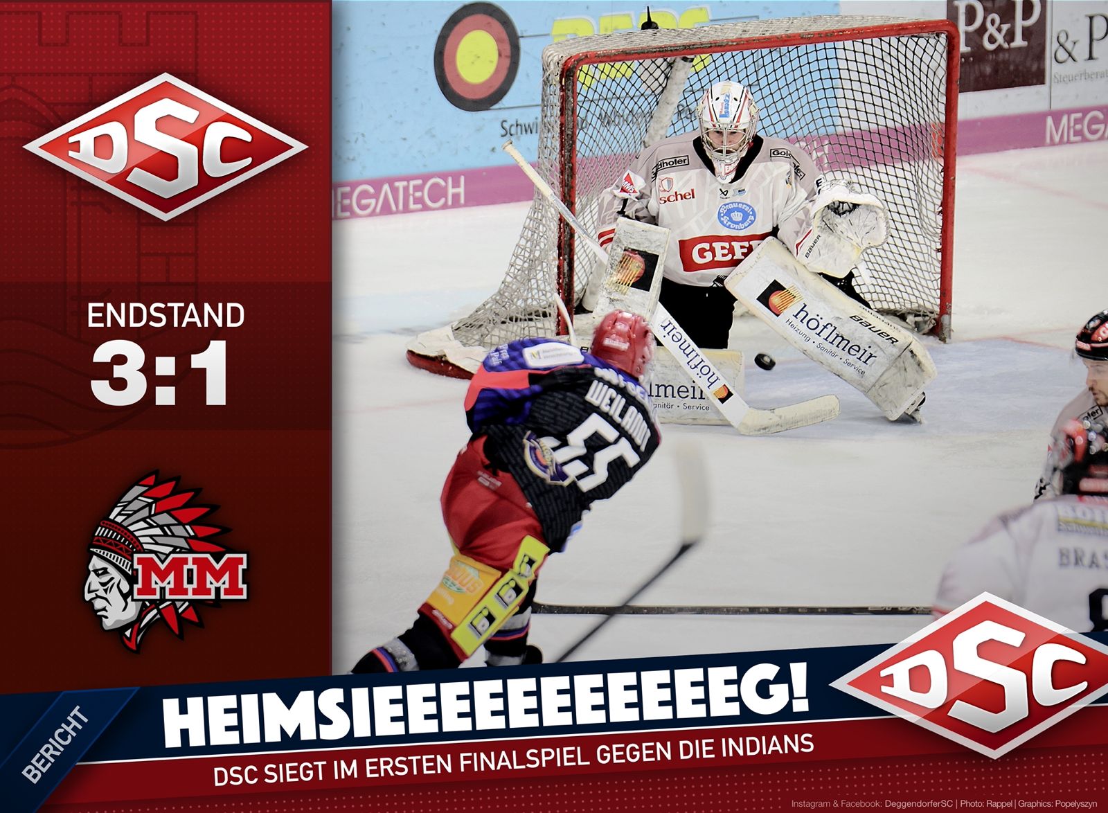 Der Deggendorfer SC startet mit einem Sieg ins Finale gegen Memmingen. Vor einer ausverkauften Hitzkopf-Arena (2.666 Zuschauer) bezwang das Team von Headcoach Casey Fratkin die Indians mit 3:1 und geht in der Serie mit 1:0 in Führung.