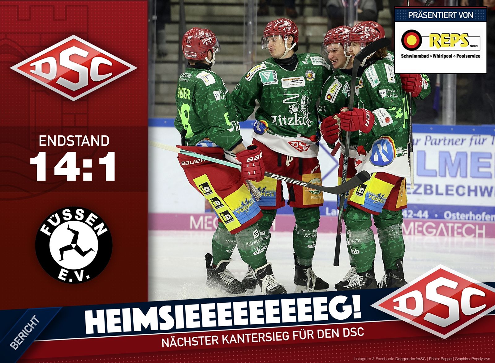 Der Deggendorfer SC feierte am Sonntagabend den zweiten Kantersieg des Wochenendes. Vor 1.664 Zuschauer in der Hitzkopf-Arena schoss das Team von Headcoach Casey Fratkin den EV Füssen mit 14:1 aus dem Stadion.