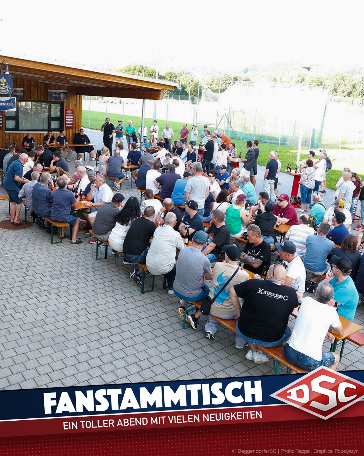 Rund einhundert Anhänger hatten sich eingefunden und lauschten gespannt den Protagonisten: Prokurist Stefan Liebergesell, Geschäftsstellenleiter Tobias Blechinger, Curtis Leinweber und Neu-Coach Casey Fratkin sprachen über die Vorbereitungen für die anstehende Saison, den großen Umbruch im Deggendorfer Kader und darüber, dass sie die neue Eiszeit kaum mehr erwarten können.
