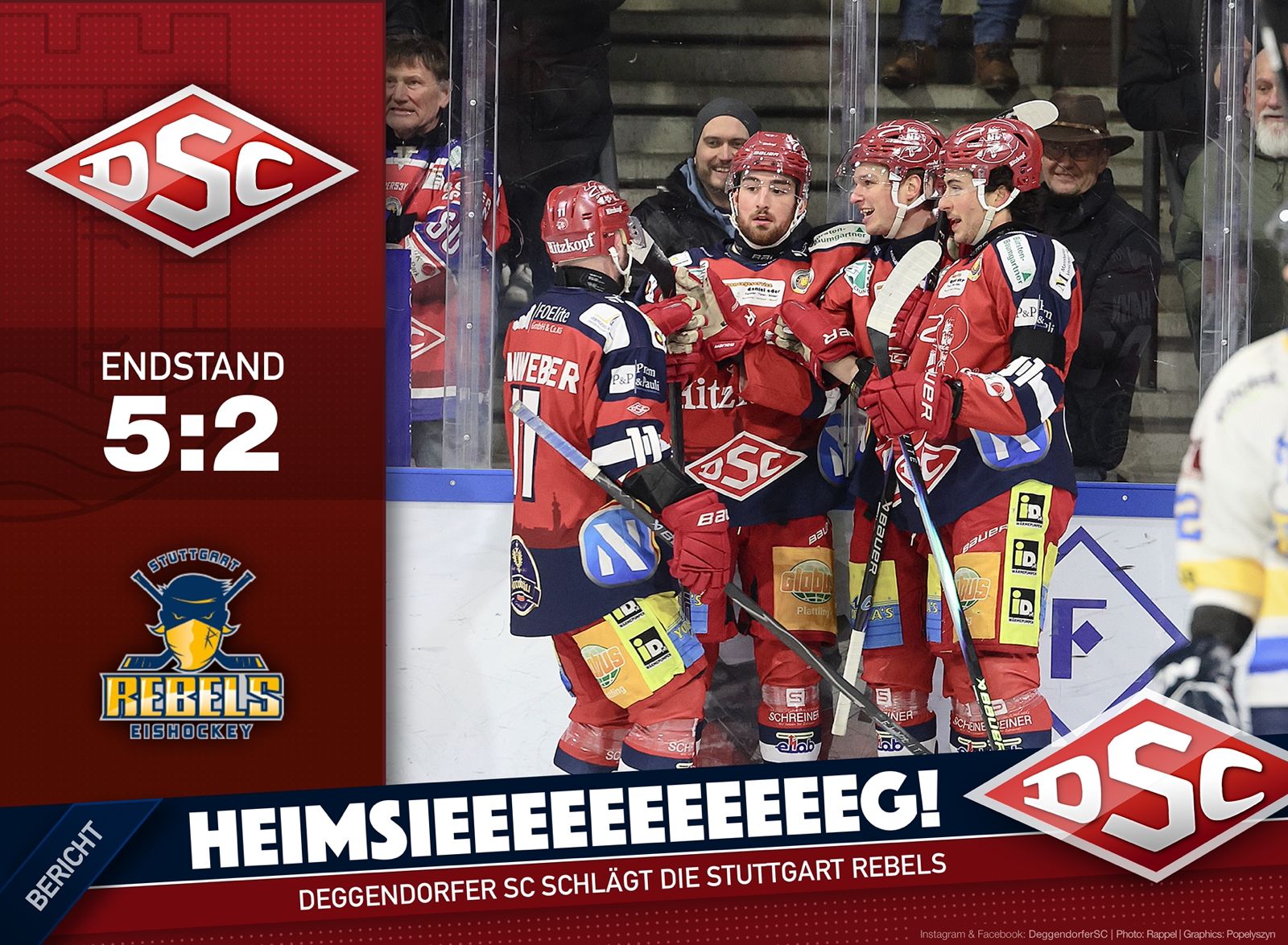 Der Deggendorfer SC feiert am Sonntagabend ein weiteres Sechs-Punkte-Wochenende. Vor 2.119 Zuschauern in der Hitzkopf-Arena bezwang das Team von Headcoach Casey Fratkin die Stuttgart Rebels mit 5:2.