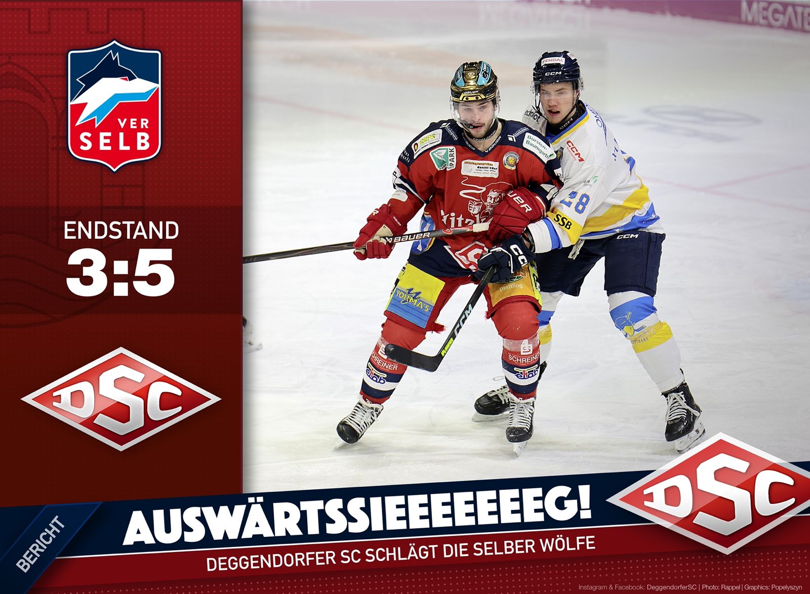 Zu Beginn des Schlussdrittels wurde der Deggendorfer Druck schließlich belohnt. Im Powerplay erzielte Dylan Jackson – auf Zuspiel seines Bruders Ty – in der 42. Minute den verdienten Ausgleichstreffer. Es blieb weiterhin ein Spiel auf Messers Schneide und steuerte auf eine dramatische Schlussphase zu. Der Reihe nach: Zunächst scheiterte Selbs Lahtinen in der 56. Minute an Timo Pielmeier, ehe nur zwölf Sekunden später der Puck plötzlich im Selber Tor zappelte. Dylan Jackson wurde von Petr Stloukal auf die Reise geschickt und schloss eiskalt zum 2:3 ab. Der Deggendorfer Topscorer legte nun richtig los: In der 58. Minute schloss der Kanadier einen tollen Sololauf per Bauerntrick zum 2:4 ab. Durchatmen bei den mitgereisten Deggendorfer Fans, jedoch hatten die Wölfe noch einen Pfeil im Köcher. Daniel Weiß erzielte in der 59. Minute bei gezogenem Torhüter den erneuten Anschlusstreffer. Selbs Trainer Felix Schütz setzte noch einmal alles auf eine Karte und nahm Weidekamp erneut aus seinem Tor. Dieses Mal hatten die Deggendorfer jedoch etwas dagegen und Dylan Jackson sorgte in der 60. Minute mit seinem vierten Treffer an diesem Abend zum 3:5 endgültig für die Entscheidung.