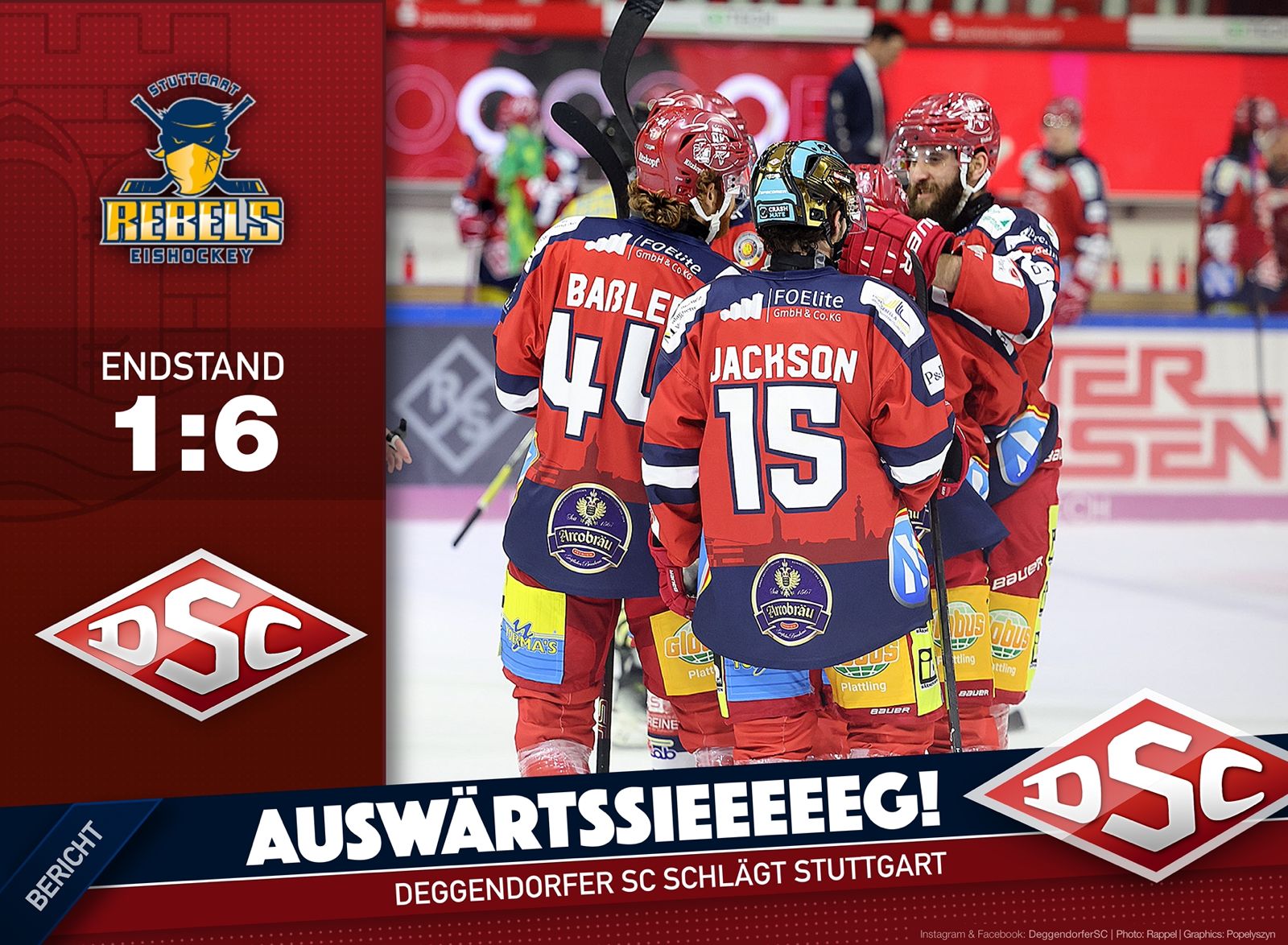 Der Deggendorfer SC sicherte sich am Sonntagabend beim Auswärtsspiel in Stuttgart alle drei Punkte. Mit einem deutlichen 1:6 bezwang das Team von Trainer Casey Fratkin die heimischen Rebels.