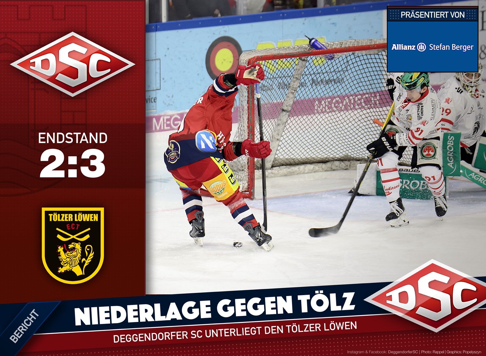 Knappe Heimniederlage im Topspiel: Deggendorfer SC zieht gegen Tölzer Löwen den Kürzeren