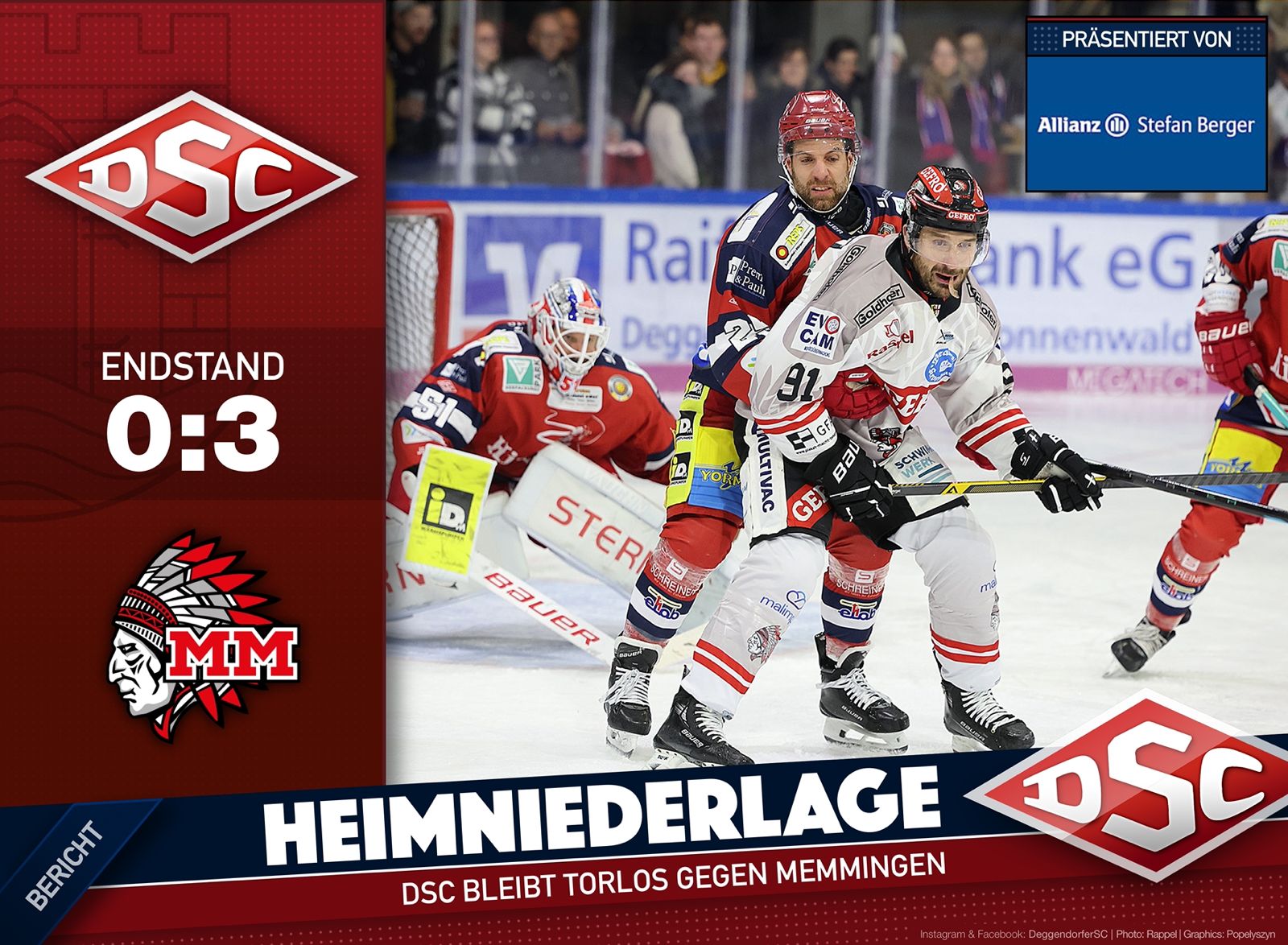 Erstmals tor- und punktlos blieb der Deggendorfer SC in dieser Saison auf heimischem Eis. Vor 1.847 Zuschauern in der Hitzkopf-Arena unterlag das Team von Trainer Casey Fratkin in einer engen Partie den Memmingen Indians mit 0:3.