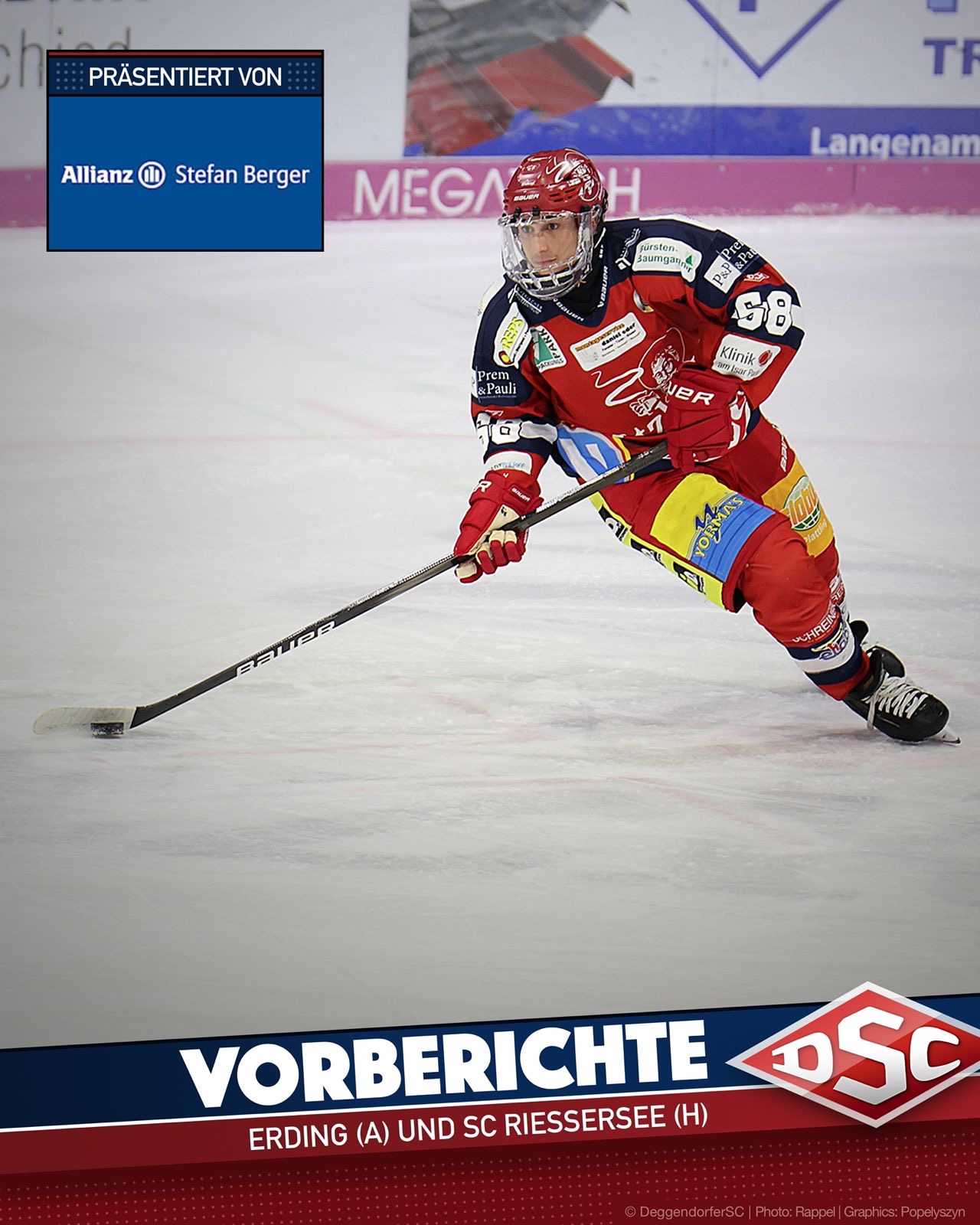 Nach dem erfolgreichen Heimauftritt gegen den EC Peiting und dem damit verbundenen Sprung auf Tabellenrang zwei steht für den Deggendorfer SC an diesem Wochenende ein weiterer Doppelpack in der Oberliga Süd an. Am Freitagabend gastiert um 20:00 Uhr die Mannschaft von Trainer Casey Fratkin in der Stadtwerke Arena in Erding, ehe am Sonntag um 18:45 Uhr der SC Riessersee in der heimischen Hitzkopf-Arena zu Gast ist.