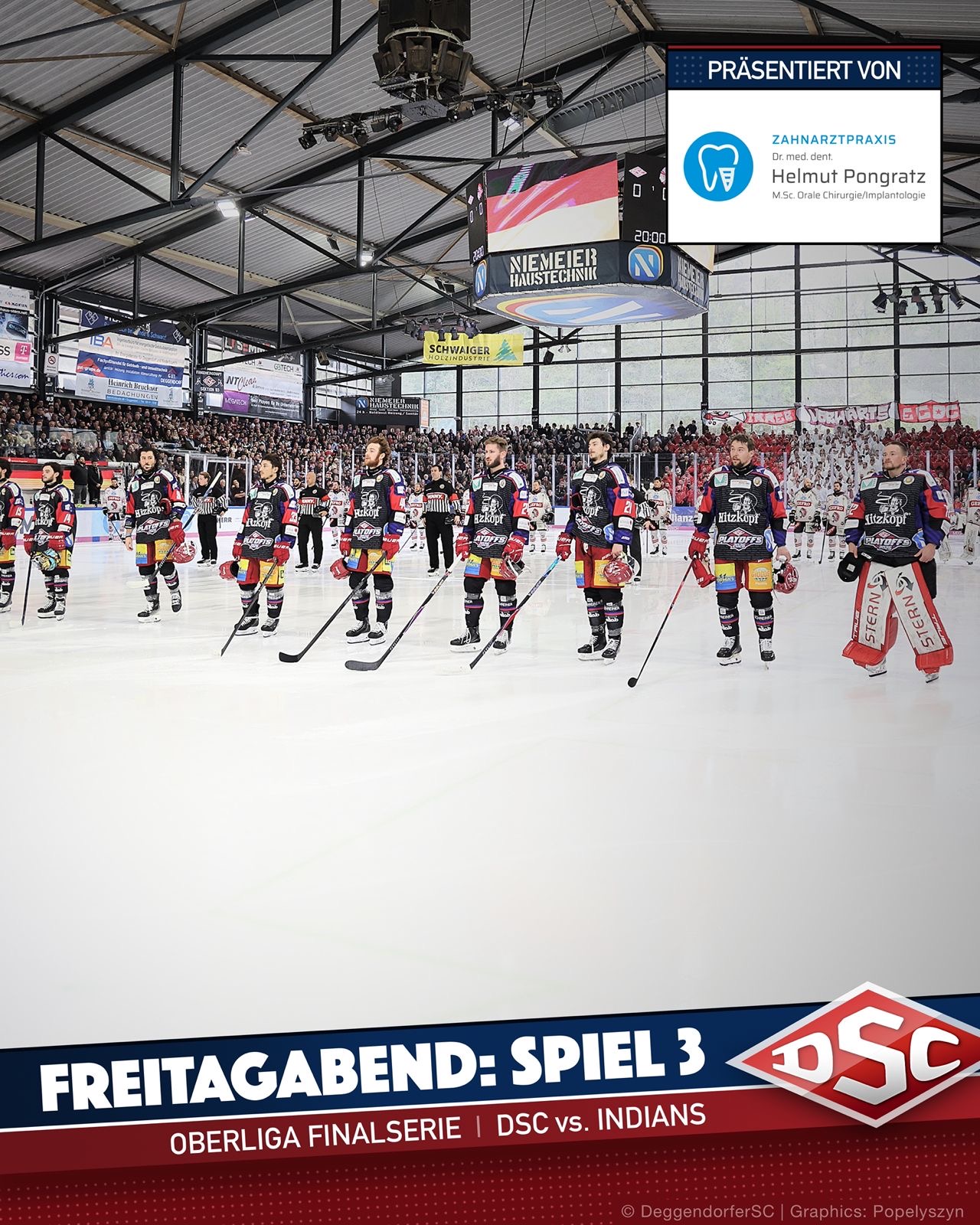 Am morgigen Freitag, den 24. April 2026, steigt um 19:30 Uhr das mit Spannung erwartete dritte Spiel der Finalserie der Oberliga-Playoffs zwischen dem Deggendorfer SC und den ECDC Memmingen Indians. Austragungsort ist die Hitzkopf-Arena, in der die Niederbayern nach der Auswärtsniederlage am vergangenen Dienstag nun wieder vor heimischem Publikum antreten. In der Serie steht es aktuell 1:1 – die Ausgangslage könnte also kaum spannender sein.