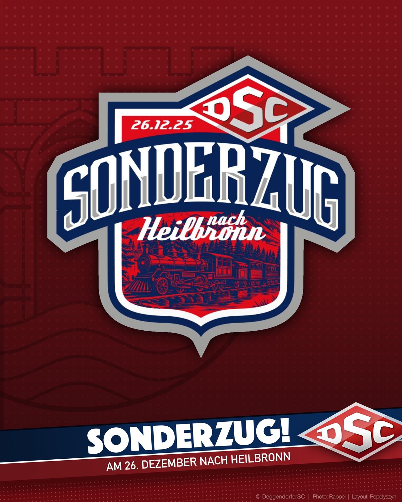 Sonderzug-Alarm in Deggendorf! Sechs Jahre nach dem letzten Sonderzug nach Rosenheim greift es der DSC in dieser Saison wieder so richtig an: Per Sonderzug soll es am zweiten Weihnachtsfeiertag nach Heilbronn gehen.