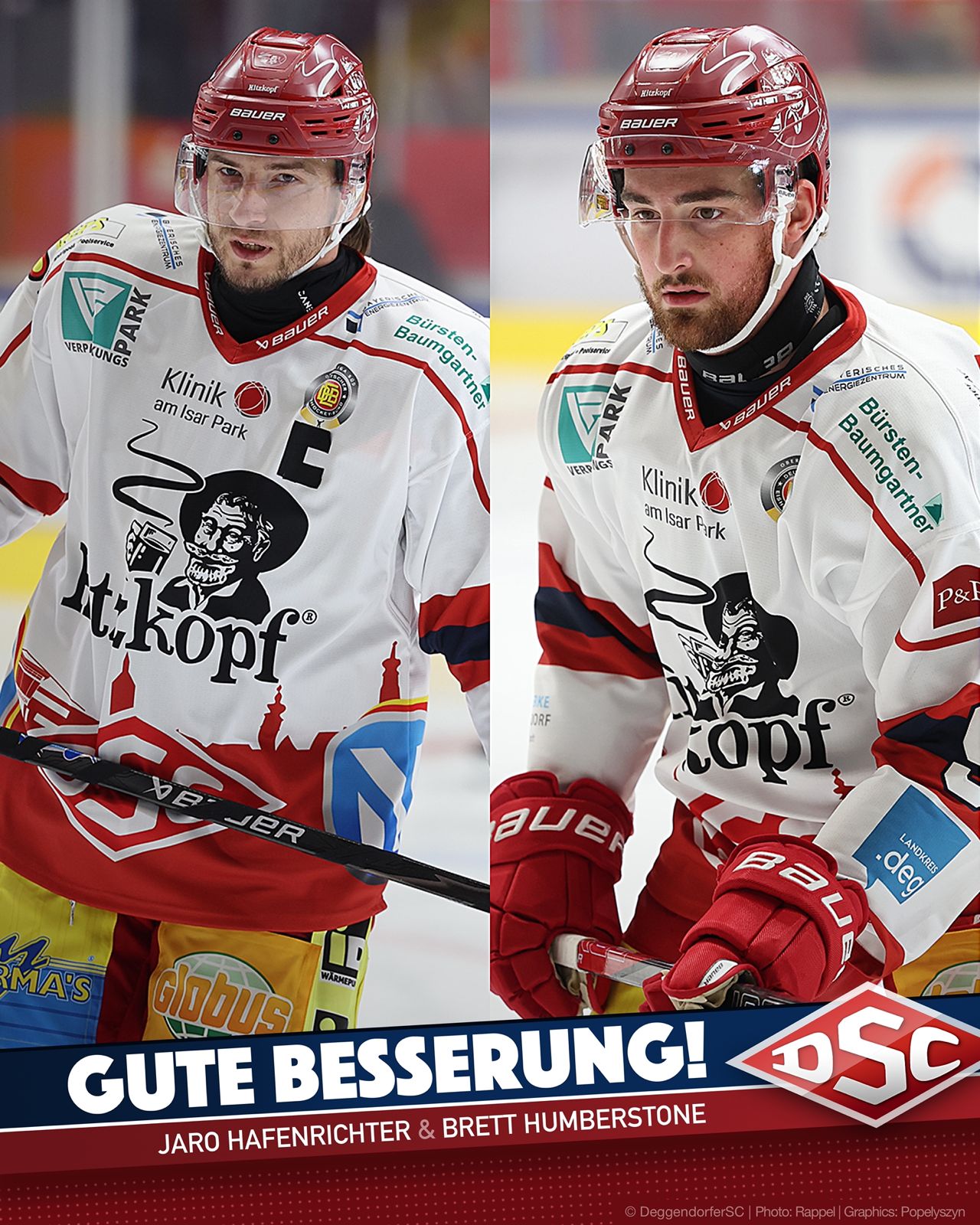 Der Deggendorfer SC muss auf unbestimmte Zeit auf zwei seiner Leistungsträger verzichten. Verteidiger Brett Humberstone und Stürmer Jaroslav Hafenrichter fallen verletzungsbedingt aus.