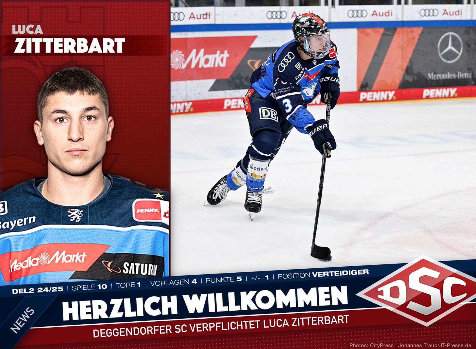 Der Deggendorfer SC hat auf die anhaltende Verletzungsmisere reagiert und seinen Kader mit einem echten Alleskönner verstärkt: Luca Zitterbart wechselt ab sofort zum DSC und wird künftig mit der Trikotnummer 33 in Rot-Blau auflaufen.