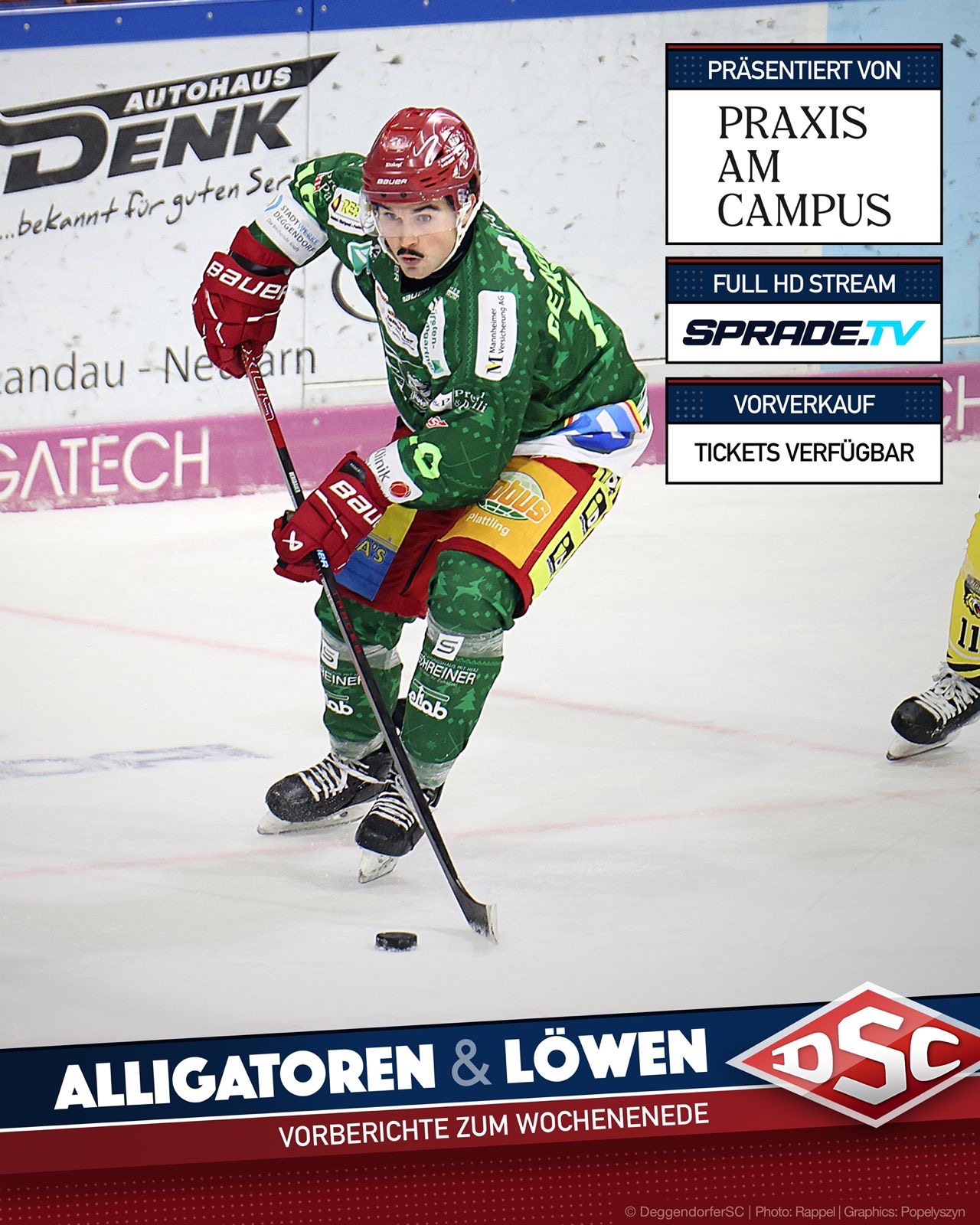 Die Gäste aus dem Aischgrund reisen mit zehn Punkten aus den letzten fünf Spielen und Tabellenrang elf nach Deggendorf, stehen jedoch in der Auswärts-Tabelle auf dem letzten Platz. Zudem gab es zuletzt etwas Bewegung im Kader der Alligators: Petr Gulda verließ Höchstadt in Richtung Miesbach in die Bayernliga, während Dennis Swinnen und Maxim Mastic Coach Morgan Persson zuletzt nicht zur Verfügung standen. Dennoch verfügt das Team des Schweden über einige Leistungsträger: Mit Tyler Gron, Anton Seewald und Samuel Eriksson haben gleich drei Akteure mindestens einen Scorerpunkt pro Spiel auf dem Konto, Gron trägt zudem den Goldhelm. Nach dem Gastspiel in Deggendorf empfangen die Alligators am Sonntag die Lindau Islanders.